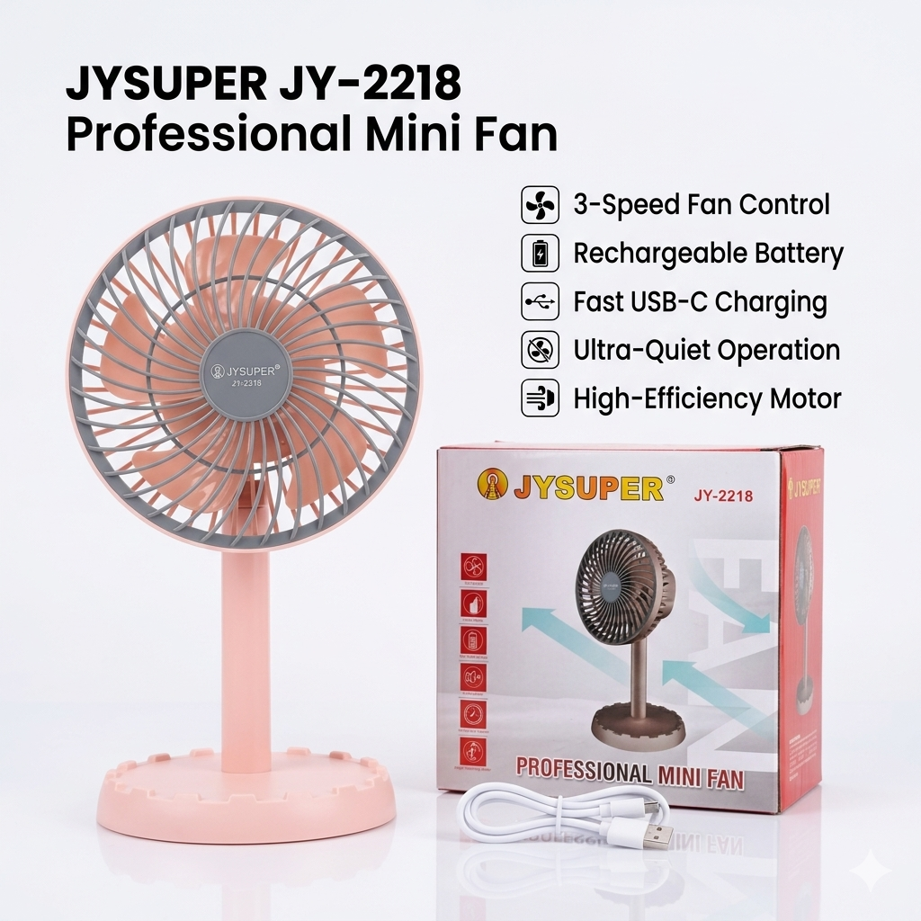 🌬️ গরমে প্রশান্তির ছোঁয়া! JYSUPER JY-2218 প্রফেশনাল রিচার্জেবল মিনি ফ্যান (পাওয়ারফুল ও পোর্টেবল)